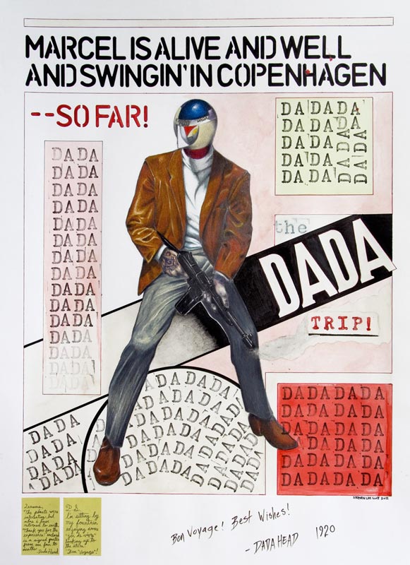 Stephen Lee Scott - 2012, Marcel, Ink, pencil crayon, collage, wash on paper, 30 x 22 inches