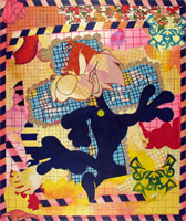 and all the elements fold into each other. So with Copley, his use of the familiar - be it pin-up girl, rose, polka dot or grid becomes new again and creates a sensational pop! For those who get their kicks out of art, it's a rush. Copley gives a lot of energy to the work. Copyright © 2008, Julie Oakes |